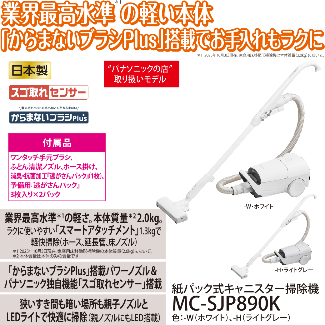 - 業界最高水準★1の軽さ。本体質量★2 2.0kg。ラクに使いやすい「スマートアタッチメント」1.3kgで軽快掃除(ホース、延長管、床ノズル)
